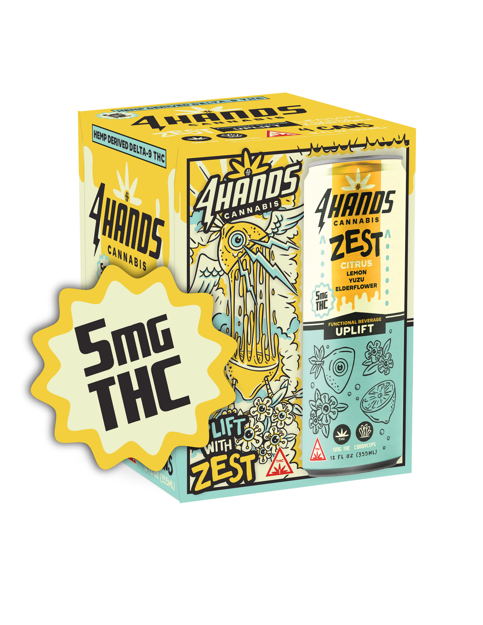 Meet Zest, an effervescent blend of lemon and yuzu that’s bright, citrusy and full of life! Light and lively, it’s crafted to lift your mood and keep the good times rolling. Infused with 5mg of hemp-derived delta-9 THC and cordyceps, an adaptogenic mushroom that will keep your body moving and your mind in the moment, Zest brings you the sweet spot between “Let’s go!” and “Let’s chill.” Zest is more than a drink; it’s a citrusy spell, crafted for the bold, the curious and the delightfully offbeat. Get bright. Get balanced. Get zestful.